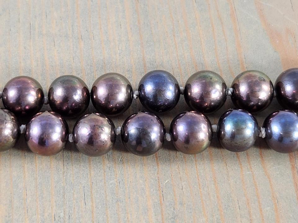 Timeless and elegant, this hand knotted 18 inch peacock pearl necklace is finished with gray silk and a classic filigree sterling silver pearl clasp. Always in style, you'll cherish a pearl necklace forever.