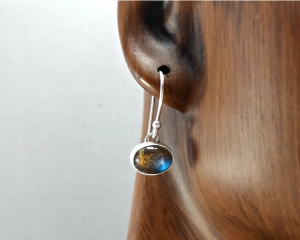 Small and elegant labradorite earrings set in sterling silver. Effortless grace -- great for everyday wear or a dressy occasion. These labradorite gemstone cabochons have a lot of color and iridescence. These little dangles would make pretty understated bridal earrings or a bridesmaid gift.